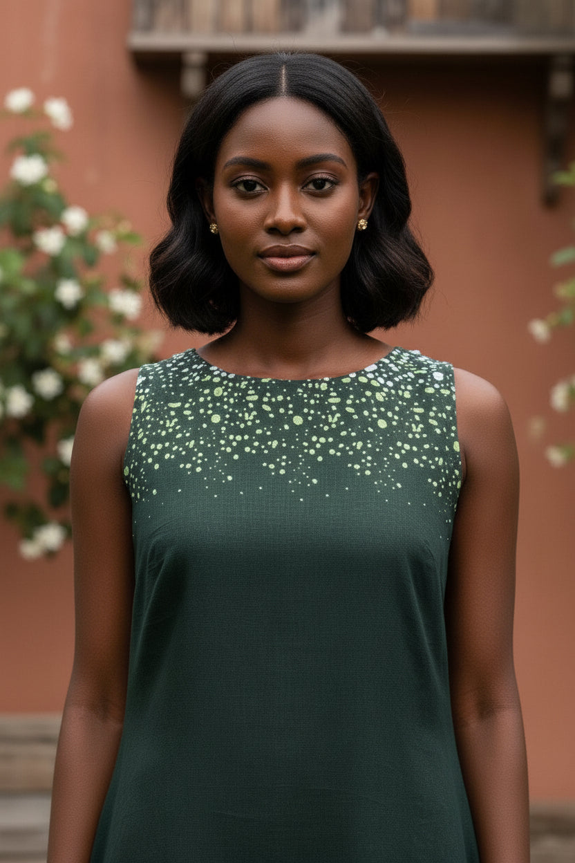 The MATCHA Green Cotton Dress by VOILAVINES is a refreshing summer staple designed for effortless everyday wear. Crafted from 100% breathable cotton voile, this sleeveless dress features a beautifully placed print that enhances its clean silhouette while offering all-day comfort during warm weather.