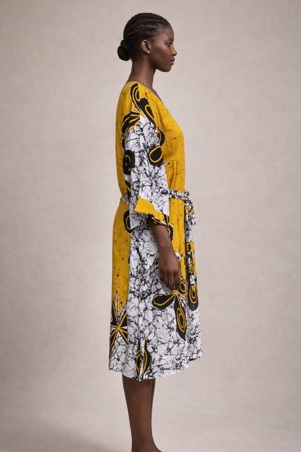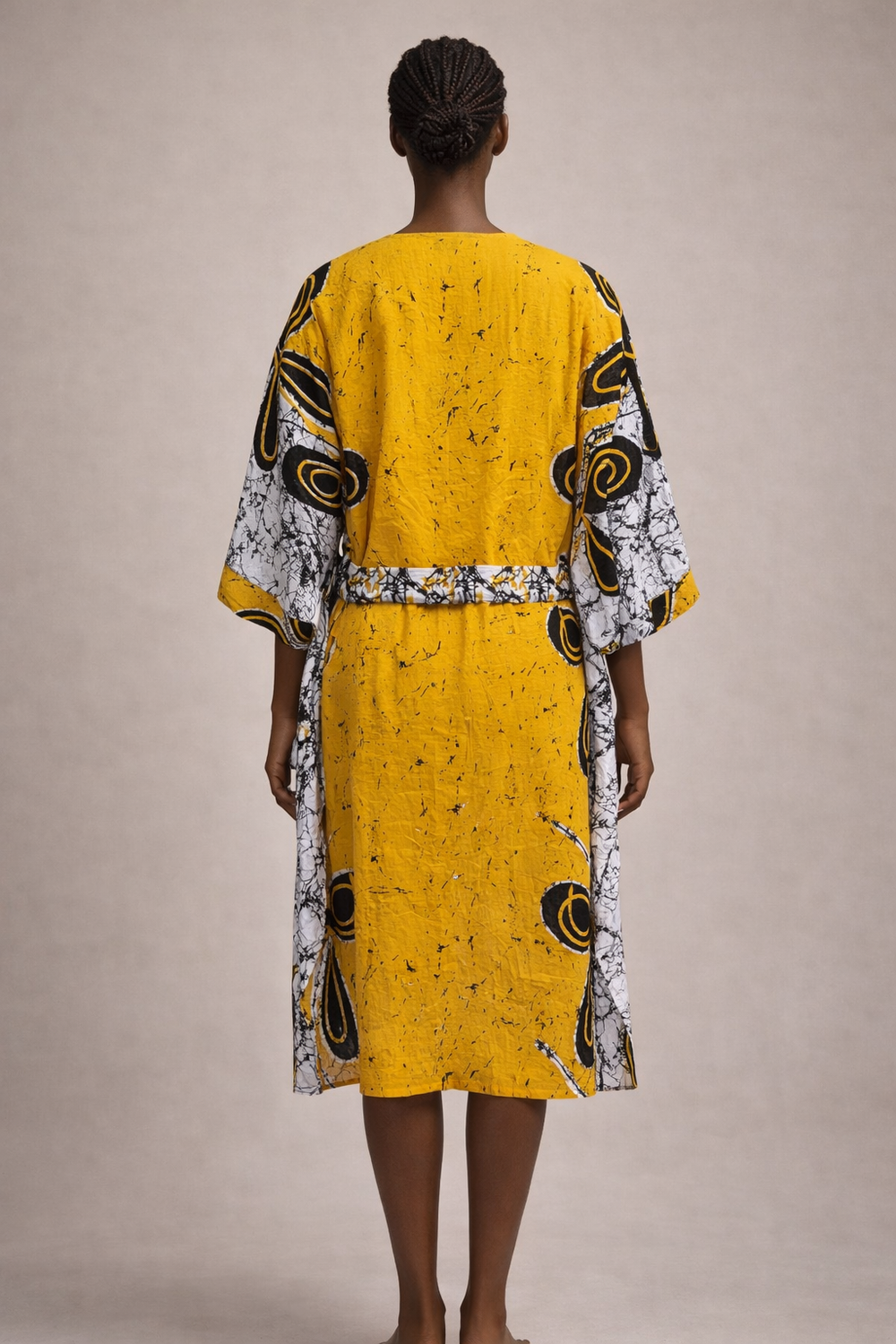 The BAGA Batik Cotton Kaftan by VOILAVINES is a relaxed, breezy silhouette designed for effortless summer dressing. Crafted from 100% cotton voile, this kaftan features a vibrant yellow batik print that reflects artisanal charm while keeping you cool and comfortable. Perfect for beach days, resort stays, and warm-weather lounging.